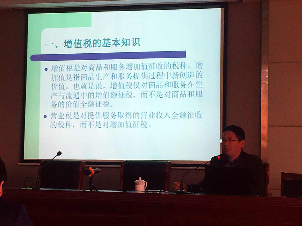 为贯彻落实“营业税改增值税”的相关税改精神,有效规避税务风险,进一步提升企业的经营管理水平,让管理人员了解掌握“营改增”改革的相关规定,认真贯彻执行“营改增”的各项政策,我公司与2017年3月10日邀请高邮市税务局有关领导对我公司财务相关人员及部分生产经营管理人员,进行了交通行业“营改增”政策培训。