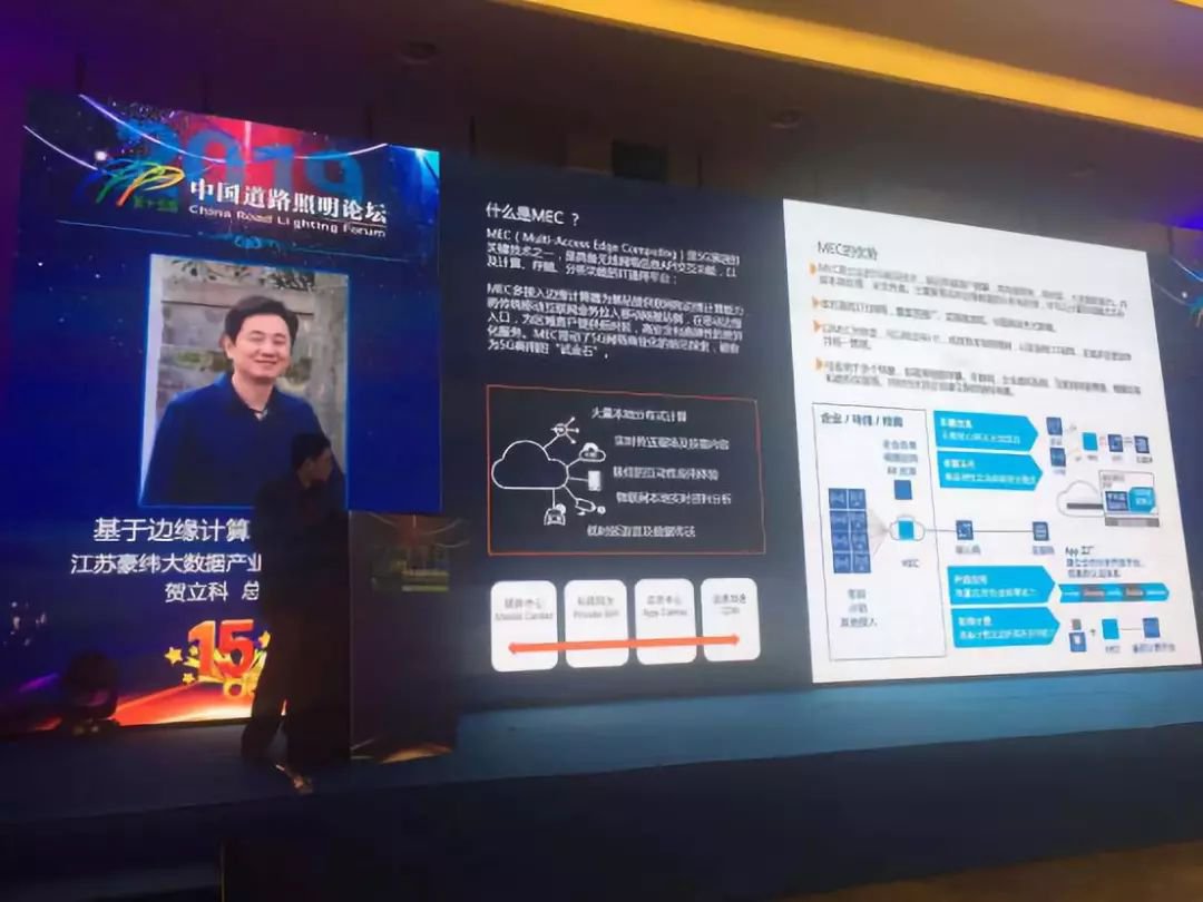 江苏豪纬大数据产业发展有限公司总经理贺立科作《基于边缘计算的智慧灯网》演讲,提出以智慧灯网为智慧城市的切入口,利用