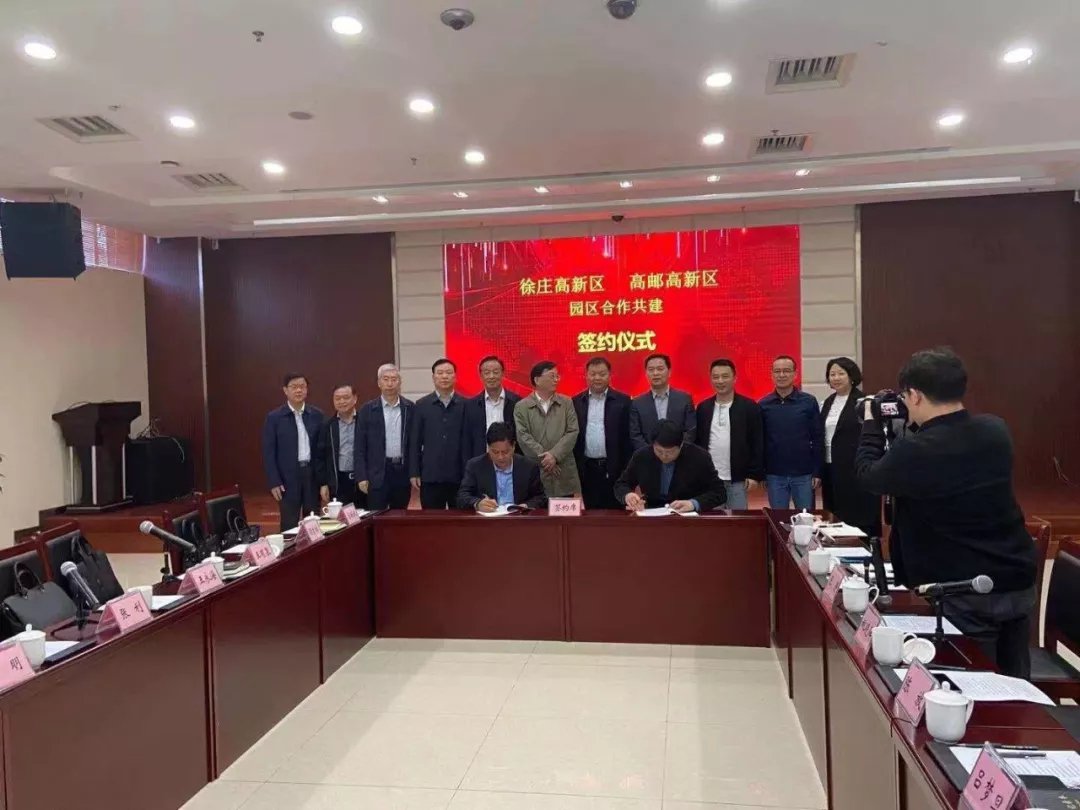 此后,徐庄高新区与高邮高新区就两地合作项目进行了签约仪式,此次徐庄高新区与高邮高新区的合作共建,将实现不同区域的分工协作、进一步将两地优势资源优化配置,为两地高新区入驻的各产业群体,各企业提供更多的的战略资源(市场信息、高级人才、科研成果等)和优质平台。